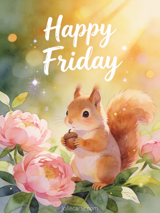 Send a cheerful happy Friday message to celebrate the end of the week with joy. Discover also a happy Friday card, a happy Friday greeting or a happy Friday kisses card.