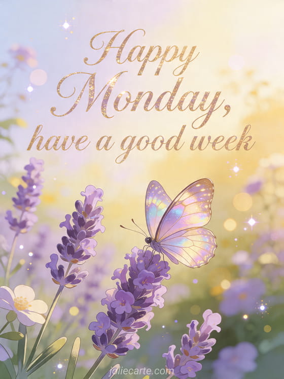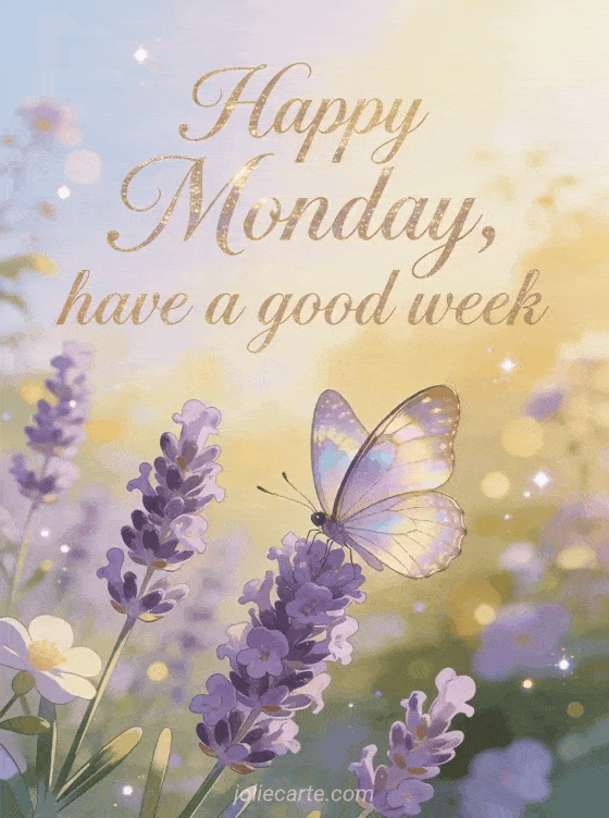 Send a lovely Happy Monday card with a butterfly on lavender flowers to begin the week peacefully. Discover also stay strong happy monday, pretty happy monday image and it's raining happy monday in the rain.