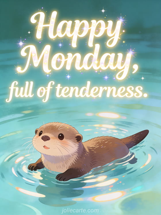 Happy Monday, full of tenderness. a warm Monday greeting with a playful otter
