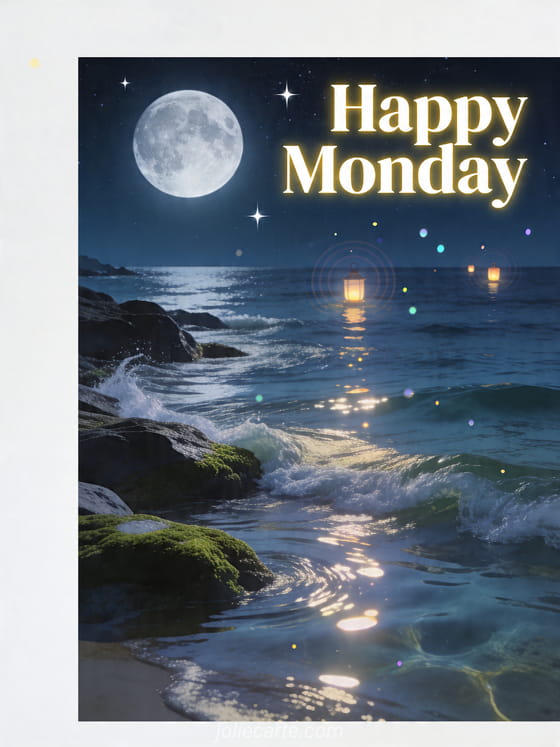 Send a beautiful Happy Monday greeting with moonlight, soft waves and a soothing atmosphere. Discover also good weekend see you monday, image of happy monday and happy monday image.