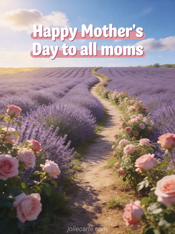 Celebrate all moms with this peaceful card featuring a lavender field and golden spring light. Discover also a happy mother's day today card or a mother's day image mom card.