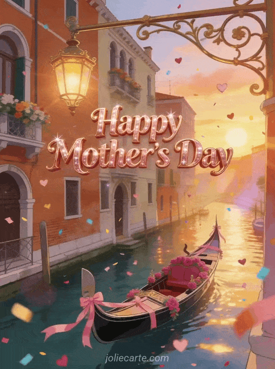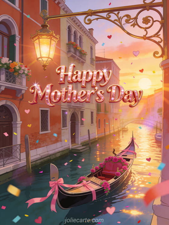 Send a bright and festive Mother's Day card inspired by a romantic Venetian sunset. You can also discover happy mother's day to my deceased mom, heart image mother's day, and mother's day message.