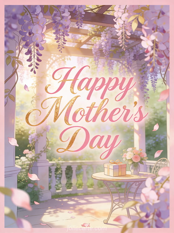 Share this romantic Mother's Day greeting card with soft spring flowers and golden light. Discover also happy mother's day my love, poem for mom mother's day, and mother's day thank you message.