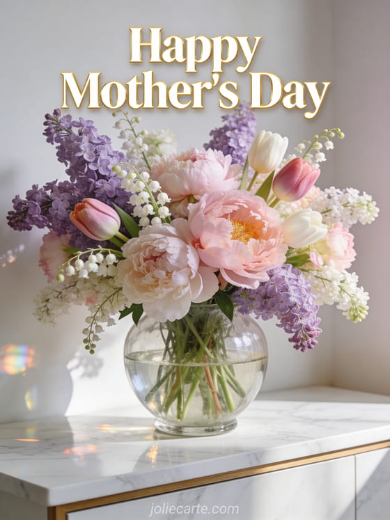 Share this free happy mothers day card to celebrate your mom with flowers and light. Discover also original happy mother's day, happy sunday mother's day, and short mother's day poem.