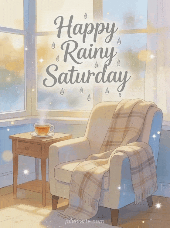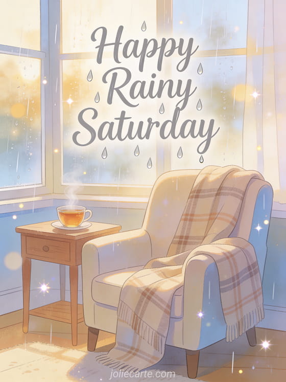 Celebrate the cozy side of a rainy Saturday with this comforting greeting card. Discover also a a happy saturday card or a happy saturday humor card.