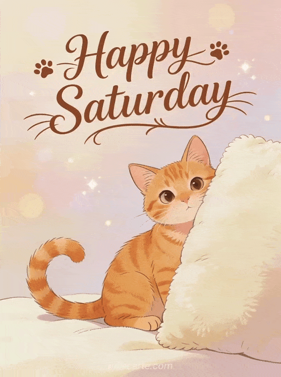 Happy saturday cat a cute and playful happy Saturday cat greeting
