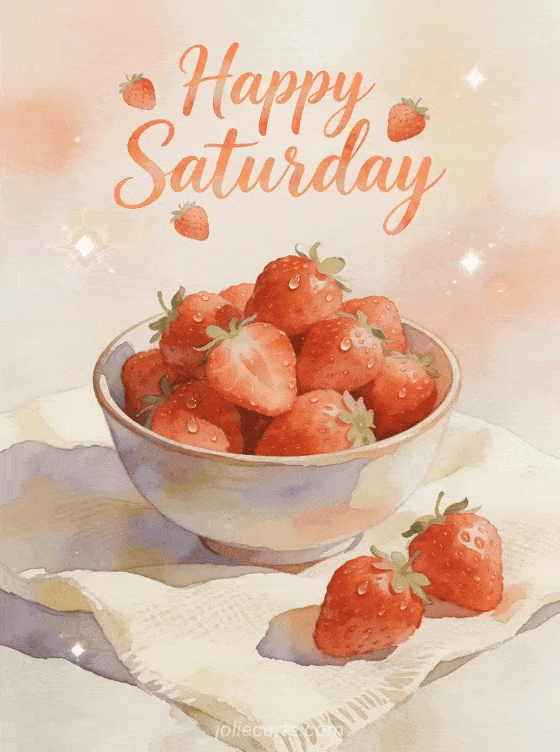 happy saturday image a soft Saturday greeting with fresh strawberries