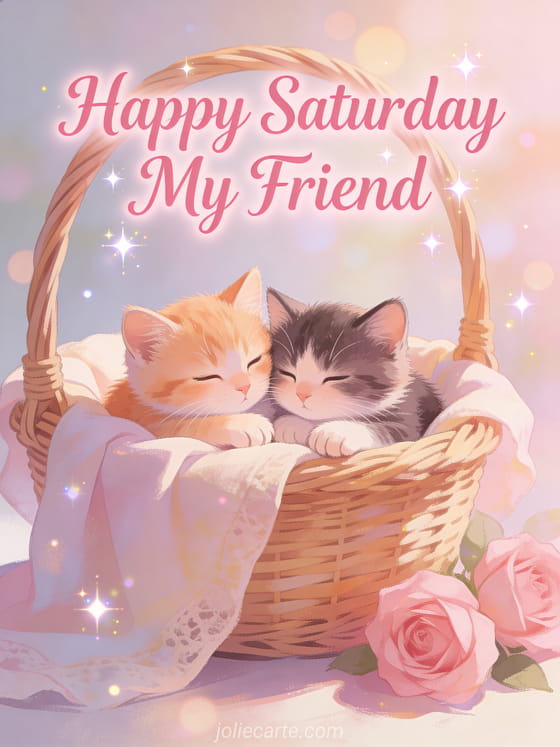 Share a tender saturday greeting with this adorable card featuring two kittens cuddling together. Discover also a happy saturday friendship card or a happy saturday in the rain card.
