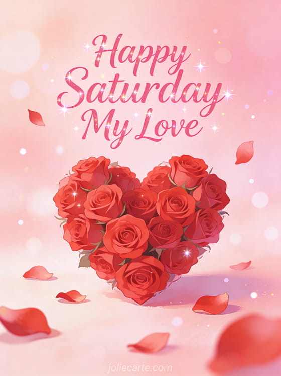 Brighten your sweetheart's weekend with this romantic happy saturday greeting. Discover also a happy saturday zen card or a friendship happy saturday kisses card.