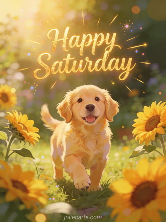 Brighten someone's saturday with this sunny greeting card featuring a golden retriever and sunflowers. Discover also a happy saturday quote card or a happy saturday my heart card.