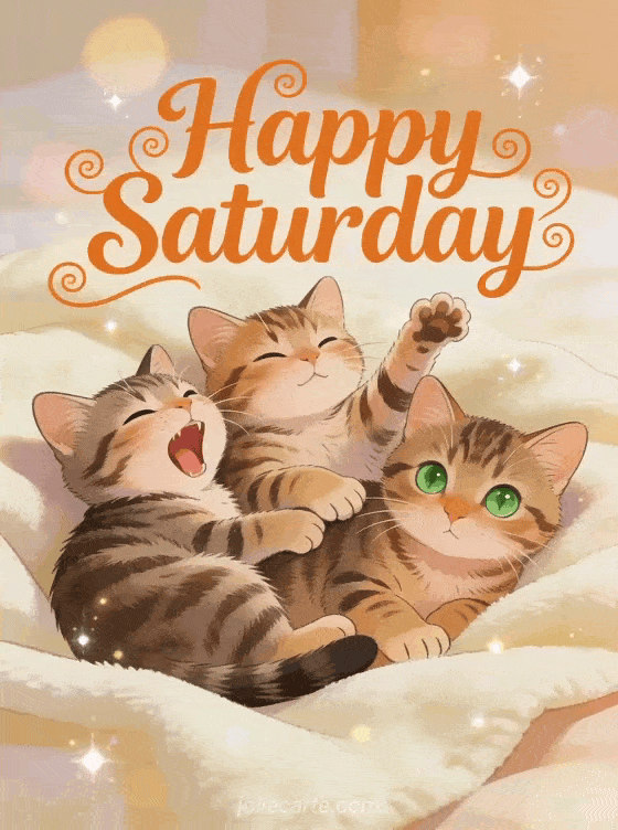 happy Saturday with cats a cozy morning greeting