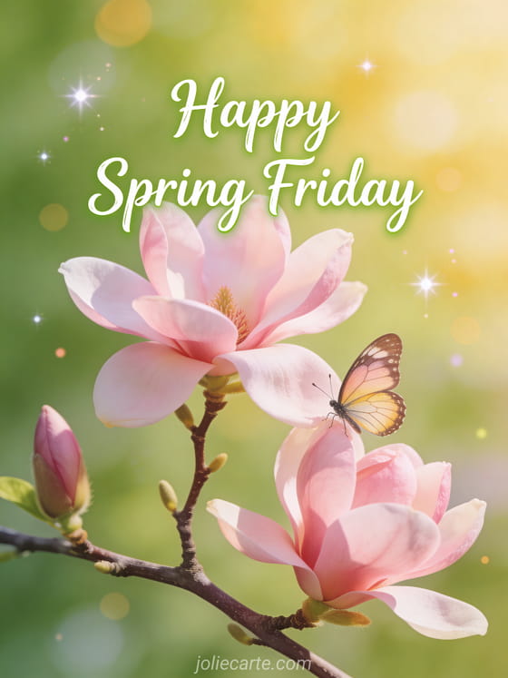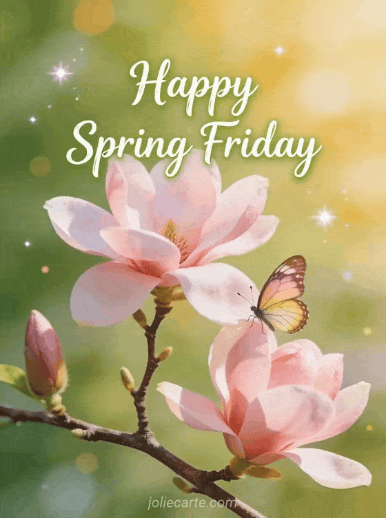 Share a beautiful happy spring Friday greeting to celebrate the season and the end of the week. Discover also Friday good morning or a good morning and happy Friday gif.