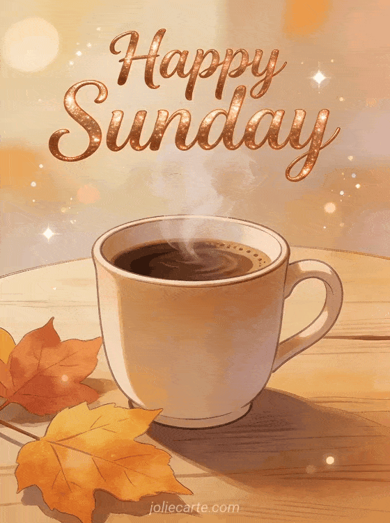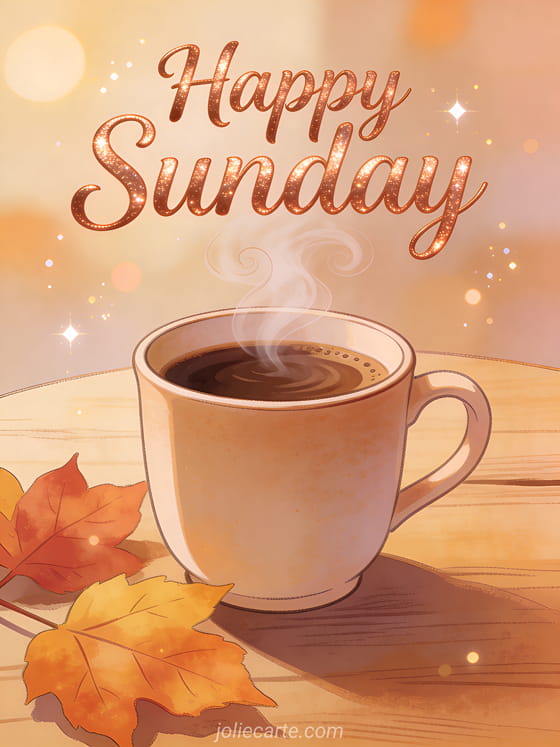 Happy sunday image a warm and cozy happy sunday image with a steaming coffee cup and autumn leaves