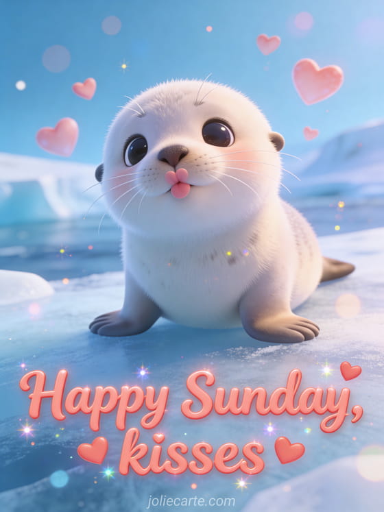 Share a sweet happy Sunday greeting full of love and kisses. Discover also a happy Sunday kisses card or a happy Sunday gifs card.