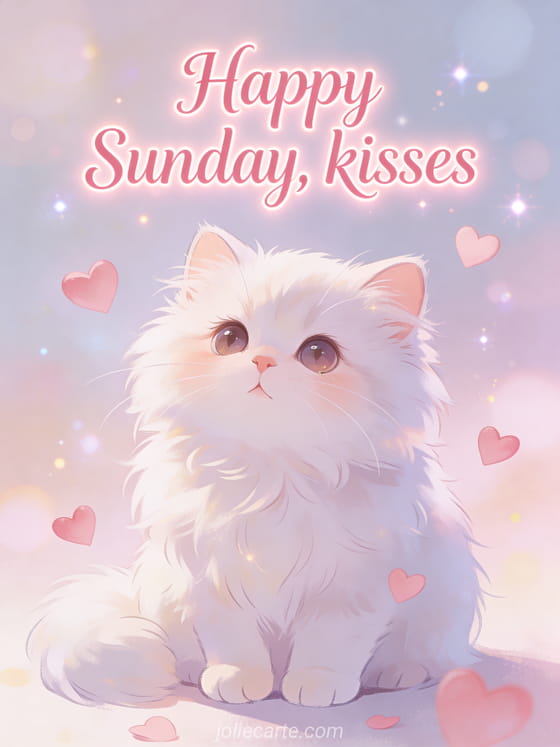 Share this Sunday card to send warm kisses and a gentle smile to someone special. You can also discover happy sunday animated images, happy sunday sms and photos to wish a happy Sunday.