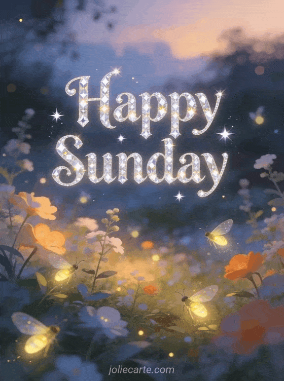 Send a magical happy Sunday greeting with sparkling diamond lettering, twinkling stars and an enchanted garden glowing with fireflies at dusk. Discover also good morning happy Sunday good morning good day, good morning happy Sunday and good day or cold happy Sunday images.