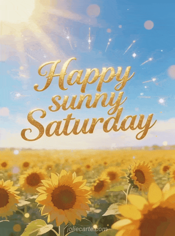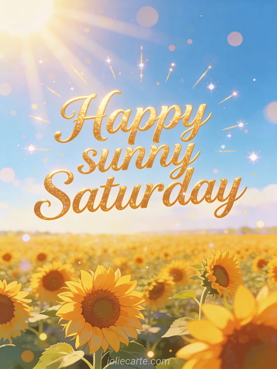 Share an uplifting happy sunny Saturday greeting with a vast sunflower field stretching to the horizon under a brilliant blue sky. Discover also happy saturday happy weekend images, happy Saturday and good weekend or a happy saturday image.