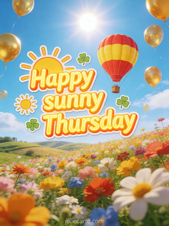 Send this happy sunny thursday card to spread some sunshine. Discover also a message to wish a happy thursday or a happy thursday winter image card.