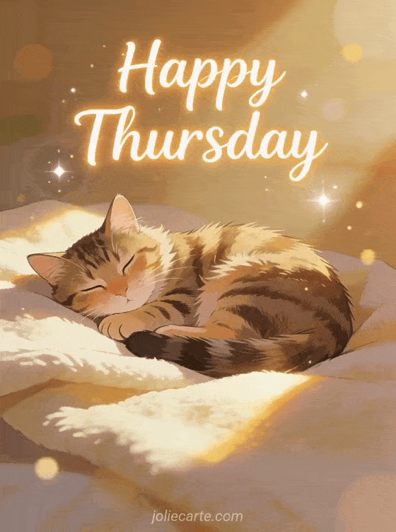 happy thursday cat a cozy Thursday greeting with a sleepy cat