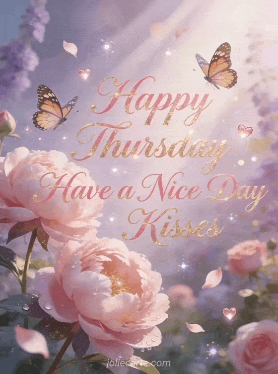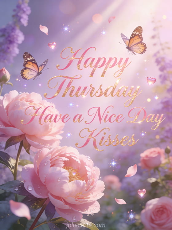 Happy Thursday have a nice day kisses butterflies and peonies for a tender Thursday