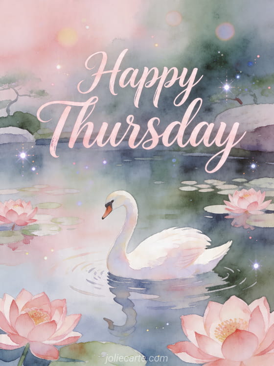 Share a peaceful happy Thursday with this graceful swan card on a tranquil pond. Discover also happy sunny thursday, good thursday evening or happy thursday free image.