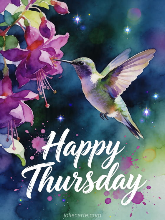 Share a happy Thursday full of color with this vibrant hummingbird card. Discover also happy thursday image, happy thursday images or happy sunny thursday.
