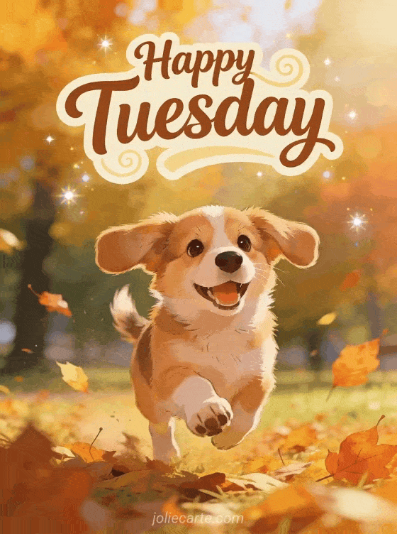 Share this happy tuesday card to send joy, movement, and a cute dog smile. Explore also good morning happy tuesday nice day kisses, original good morning happy tuesday gif, and happy tuesday animal.