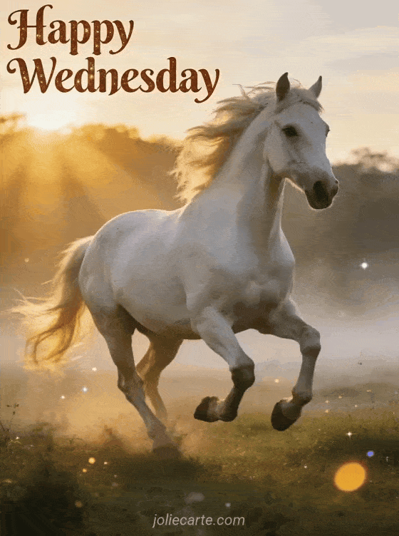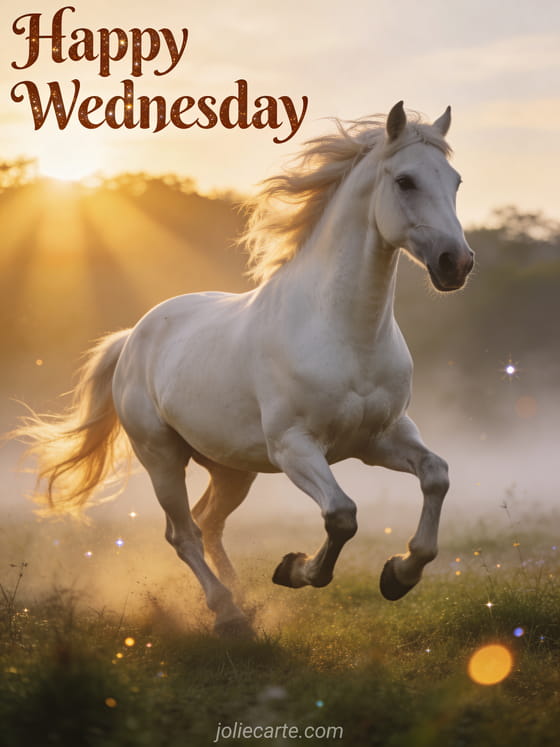 Share an inspiring Wednesday with this majestic galloping white horse card. Discover also a happy wednesday i love you card or a happy wednesday animated gif card.