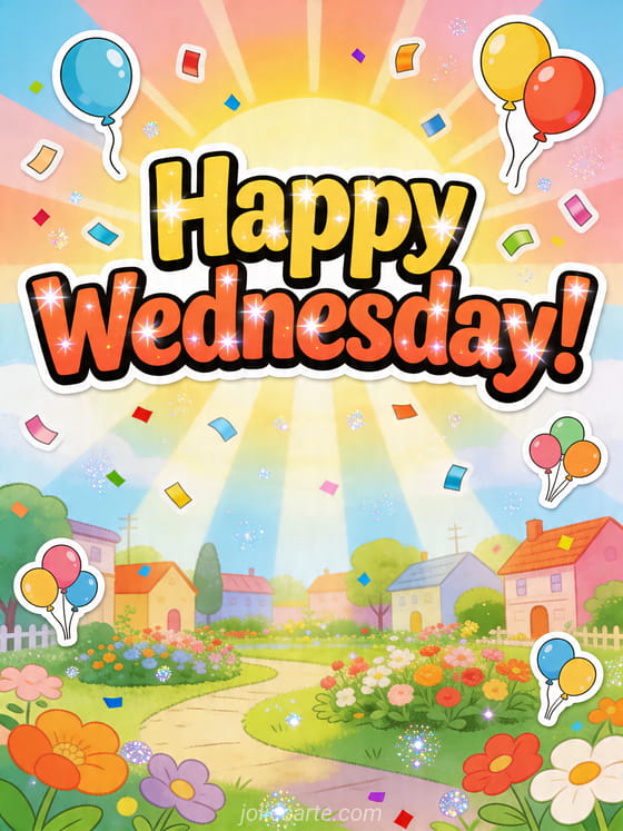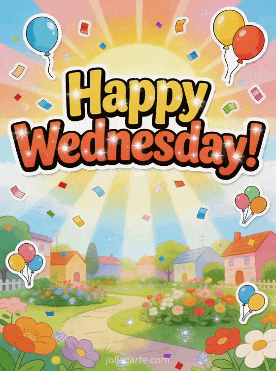 happy wednesday a bright and festive wednesday greeting full of confetti and sunrise light