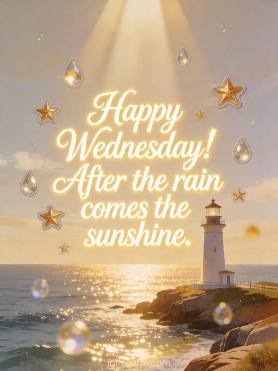 Happy Wednesday! After the rain comes the sunshine. an uplifting midweek quote by the sea
