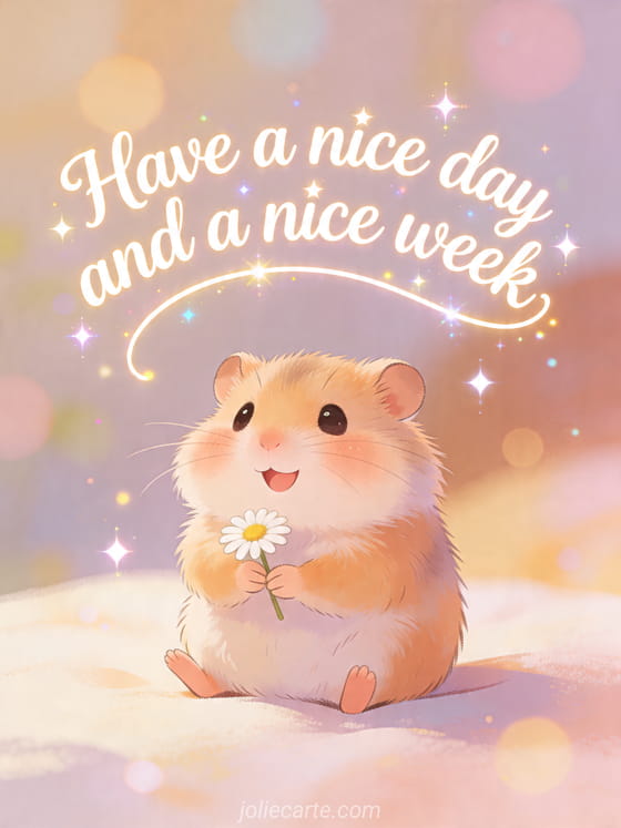 Send this have a nice day and a nice week card to spread joy, softness and a smile. Discover also beautiful day and good week, sparkling have a nice week gif or have a great week motivation.