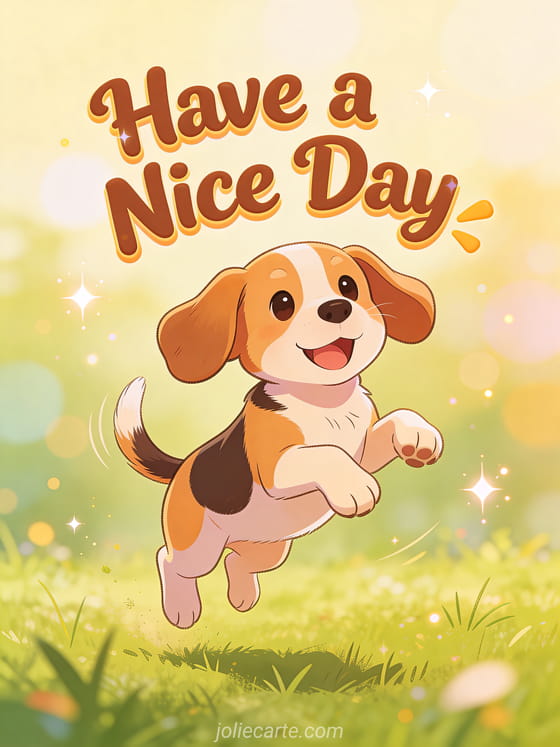 Send a bright and cheerful have a nice day greeting featuring an adorable beagle dog. Discover also a good morning my sister have a nice day image card, a have a nice day cat image card or a have a nice day quote image card.