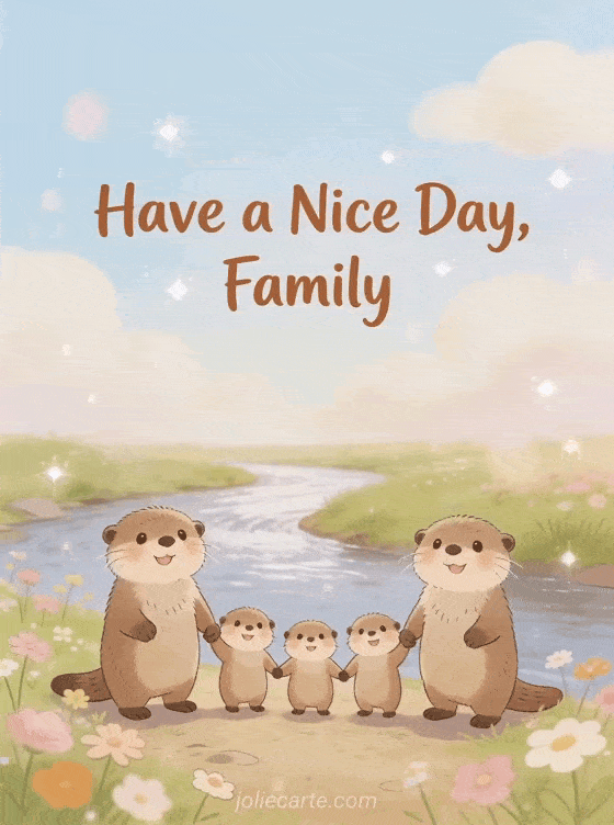 Share a heartwarming family greeting with this adorable otter family card. Discover also a have a nice day bunny card or a sunny have a nice day gif card.