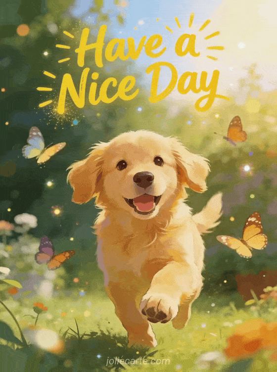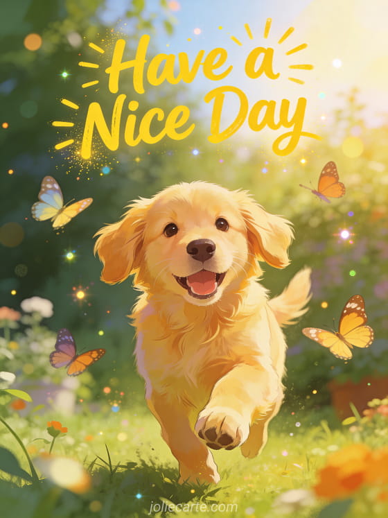 Have a nice day happy thursday a joyful happy thursday wish with an energetic golden retriever puppy