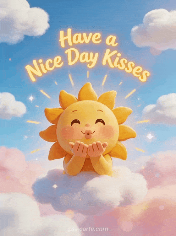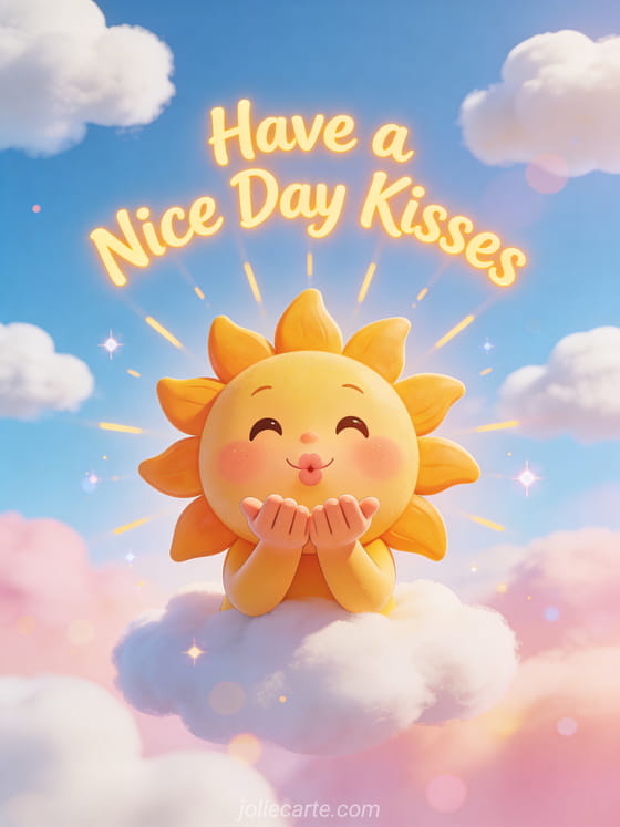 Have a Nice Day Kisses a cheerful card with a cute sun blowing kisses