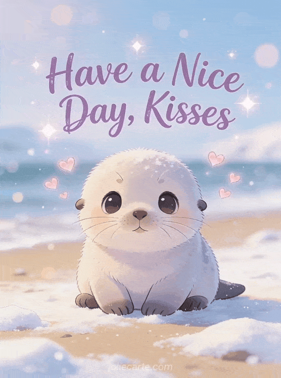 Brighten someone's day with this sweet have a nice day kisses greeting full of tenderness. Discover also have a nice day kisses gif, sunshine have a good day or have a nice day kisses card.