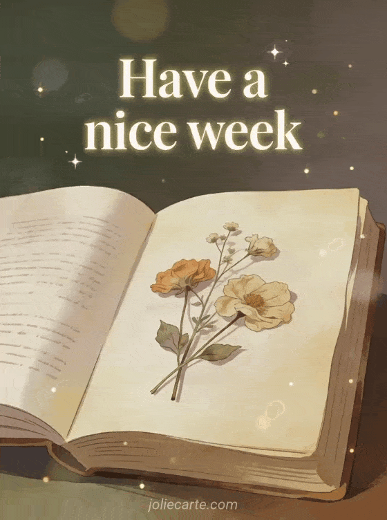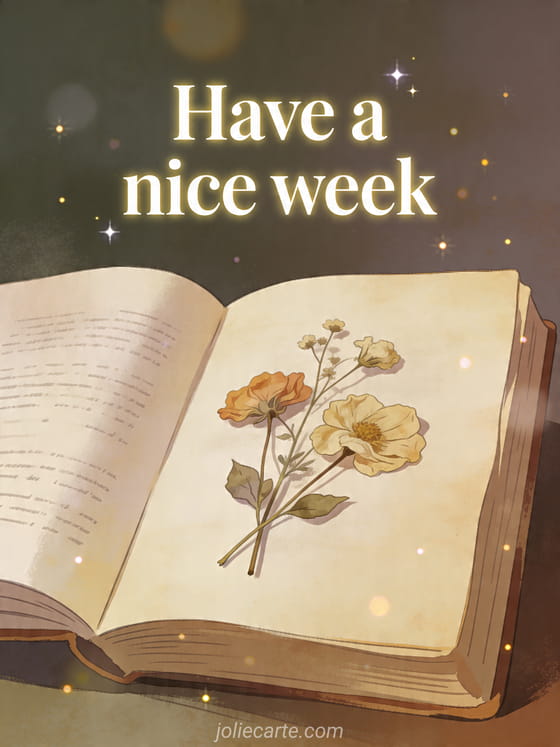 Share a thoughtful wish for a nice week with this elegant vintage book card. Discover also good morning good week, have a nice winter week with hot coffee or wishing you a nice week.