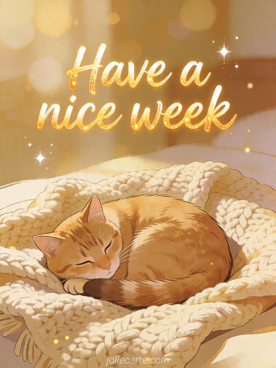 Share a warm Have a nice week greeting with this free card and send comfort for the days ahead. You can also explore have a nice day and a nice week, funny good week or heart hello good week.