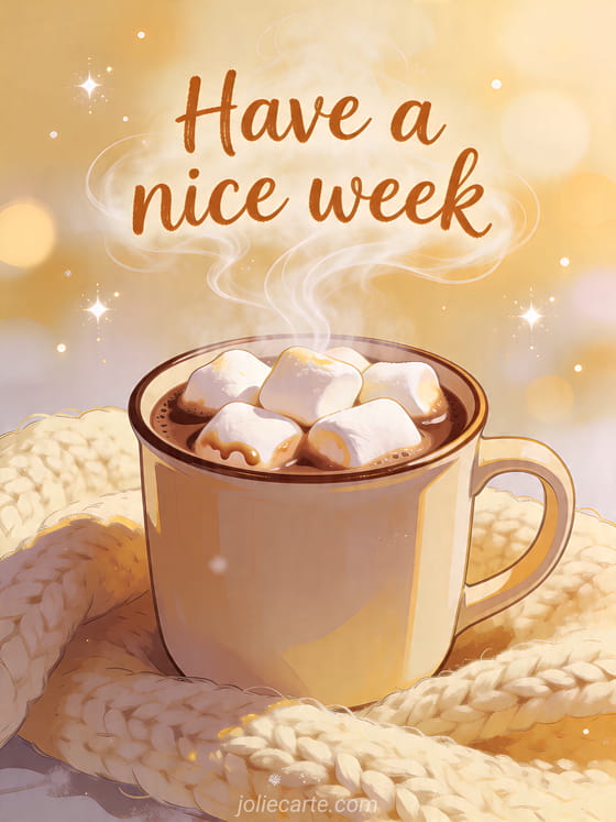 Send this have a nice winter week with hot coffee card to wrap someone in warmth and comfort. Discover also have a nice week cat, good morning good week gif or good week flowers.