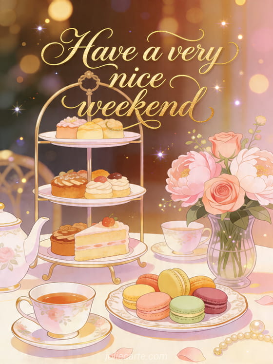 Have a very nice weekend an elegant tea-time greeting for the weekend