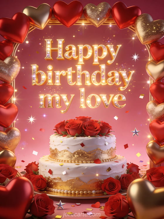 heart heart happy birthday my love A romantic birthday message full of love, hearts, and celebration.