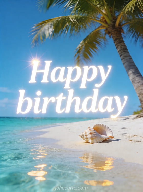 Send a bright happy birthday message with this free tropical card and share a relaxing seaside mood. Discover also free happy birthday, happy birthday cat or happy birthday champagne.