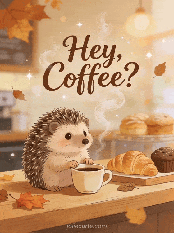 Reach out to a friend with this warm hello coffee greeting full of cozy vibes. Discover also a little hello, hello greeting or hello you gif.
