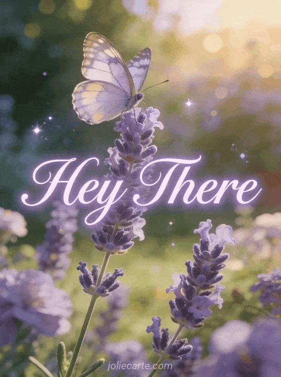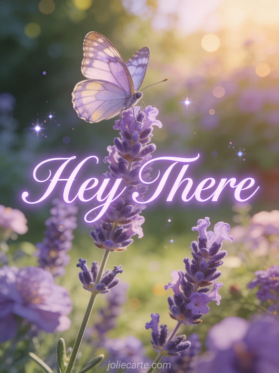 Hey there an elegant hello card with a beautiful butterfly resting on lavender flowers