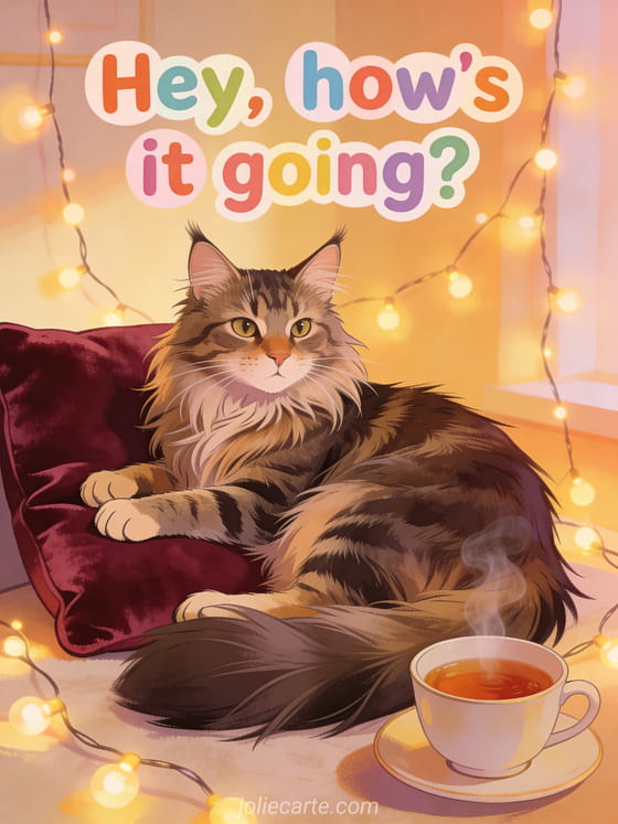 Show someone you care with this cozy hey how's it going card. Discover also a good morning how are you card or a how are you card.