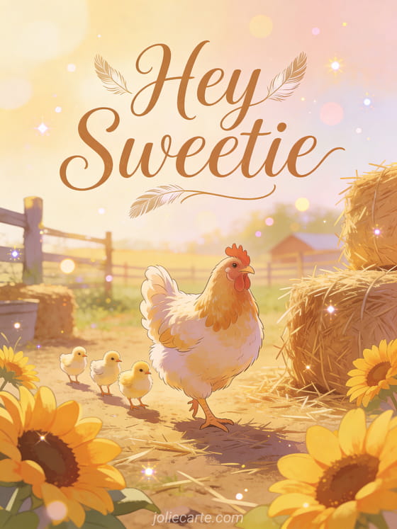Hey sweetie a cute fluffy hen with chicks to say hey sweetie