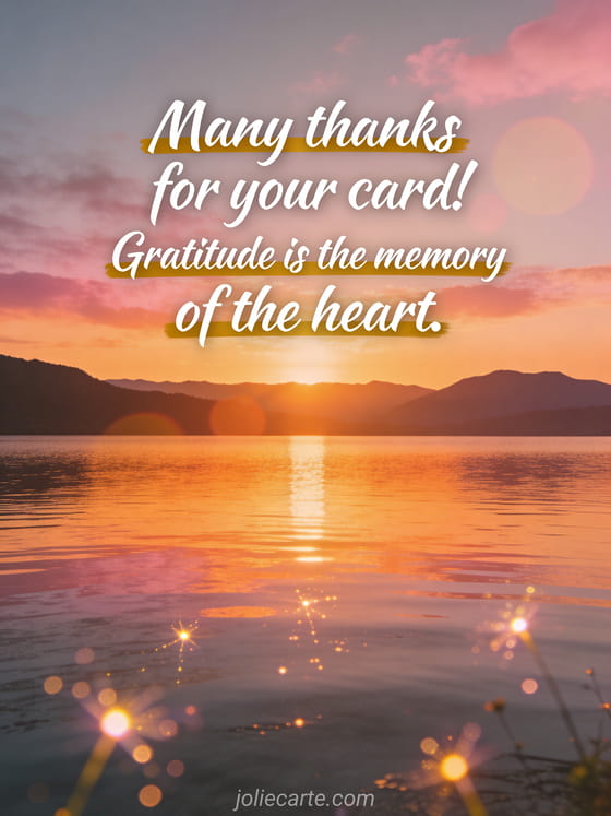 What to reply when you receive a card · Reply to a card received · Thank you for your card · Thank you for this kind gesture · Thank you for your thoughtfulness