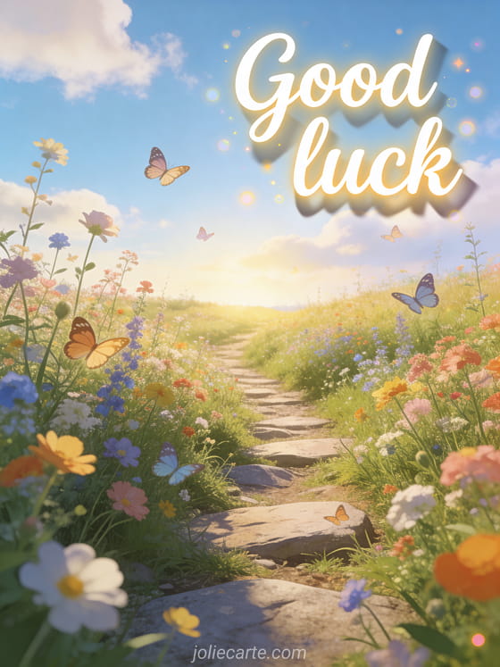 Share this beautiful countryside spring card with the message "Good luck" to encourage someone on their journey. Discover also a good luck and success card or a wishing someone good luck card.