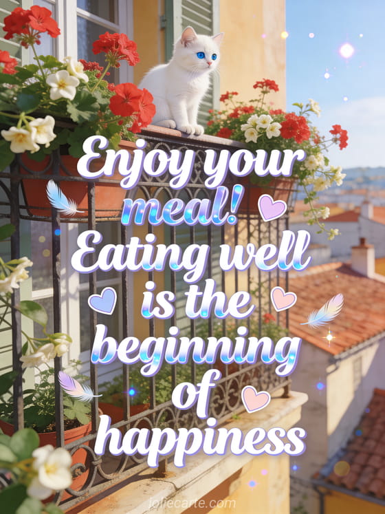 Wish someone a delicious meal with this charming Mediterranean-inspired card with a touch of humor. You might also enjoy enjoy your meal clipart image or enjoy your meal my love images for more mealtime greetings.