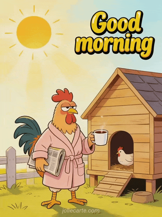 Start the day with a smile and send this hilarious good morning card. Discover also a funny good morning gif card or a lion good morning card.